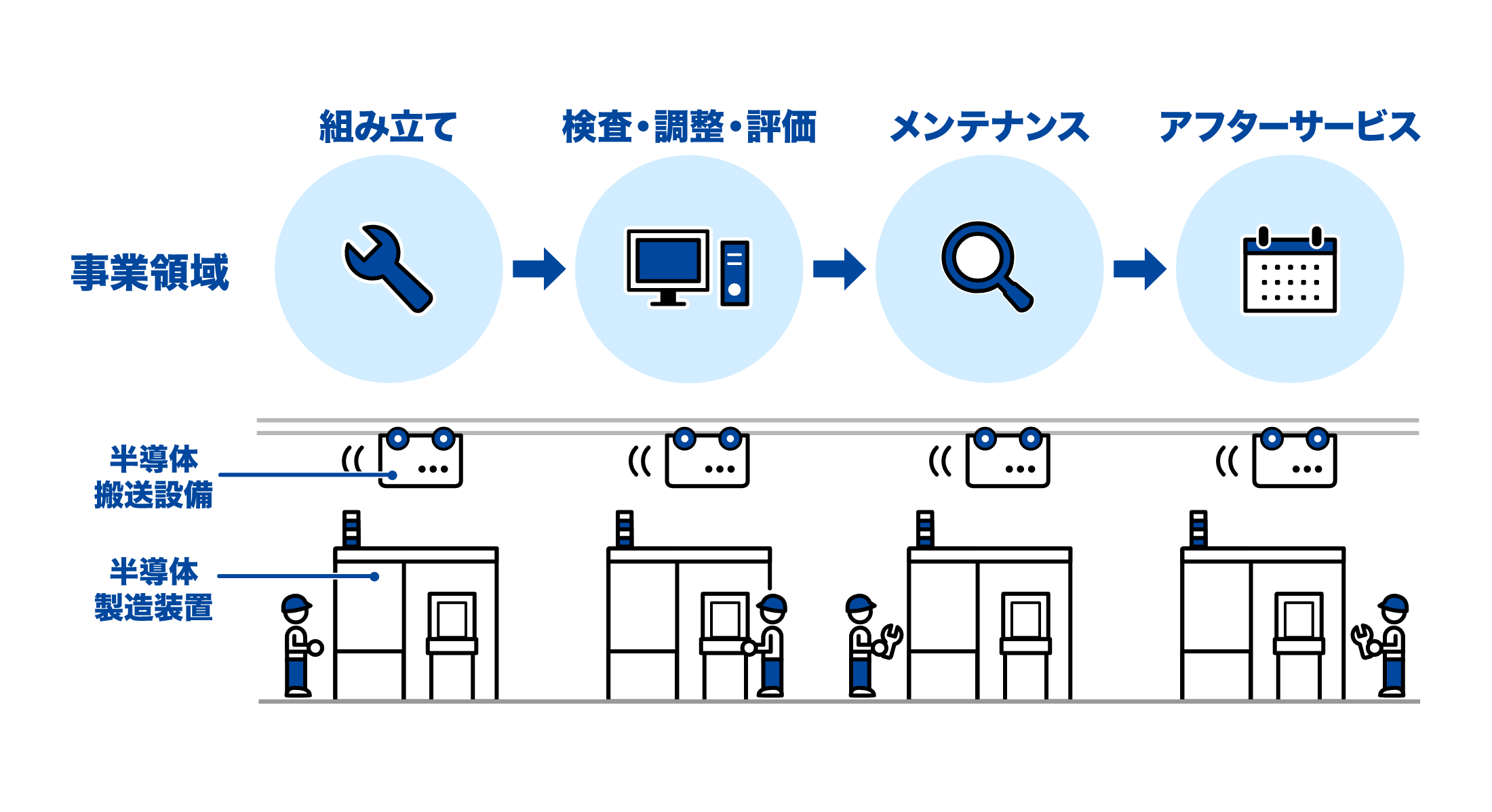 日本のものづくりを根幹から支える半導体製造装置の立ち上げ、検査・検証・メンテナンス・アフターサービスまで。